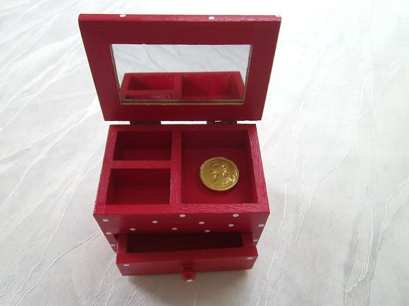 | Darin können die kleinen Schätze aufbewahrt werden. Die ersten Schmuckstücke oder Geldmünzen. Verschiedene Ausführungen, Maße jeweils angegeben. Werden auf Wunsch auch mit Namen beschriftet und Schatullenverschluss versehen. (zum Vergrößeren bitte auf die Bilder klicken)