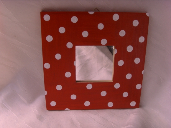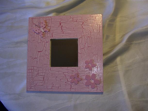 | Sehr hübsche Dekoration für´s Kinderzimmer, Flur oder Bad. Spiegel mit Holzrahmen, der mit Acrylfarben in Krakelier-Technik bearbeitet und zusätzlich dekoriert wurde. (zum Vergrößeren bitte auf die Bilder klicken)